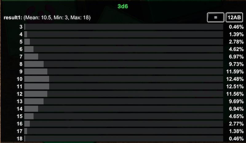 That is to say, the statistics displayed are the outcomes of many (MANY) pseudorandom simulated rolls of the dice.