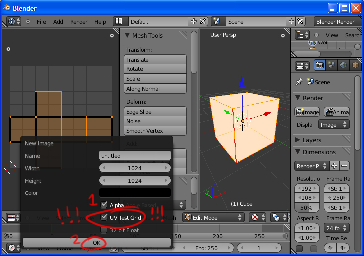 ![]() Step One is of course open blender, I'm going to unwrap the default Cube primitive, first up let's get the 'UV/Image Editor' view in place, drag a view for it... ![]() Click this icon to change what our new view is... ![]() Select "UV/Image Editor" and our workspace is ready. ![]() Make sure the model we want to unwrap is selected, and then change from object mode to Edit Mode. It's worth keeping in mind that a model's UVs are a part of a model's mesh data, so you need to be in edit mode to work on UVs, just like you need to be in edit mode if you want to work on any other part of the mesh :) ![]() We are going to mark seams now, seams are edges so let's make sure we are in edge select mode, I'm also turning off 'limit selection to visible' so I can easily select edges on the other side of the model. ![]() Now we select the edges we want to become seams, I'll go into more detail later, but for now you can think of seams as 'cuts' we make in the 3D model so that it can be unfolded (unwrapped) into a flat 2D shape (our UV layout) ![]() we shall mark these edges as seams, Select (Mesh > Edges > Mark Seam) or with your mouse over the 3D view (Ctrl+E > Mark Seam) ![]() you should see your seam edges marked in red (if not press 'n' with your mouse over the 3D view, scroll down and select the option to show seams). now we have our seams marked, let's unwrap! select all the faces you want to unwrap, in this case all of them, so a good old select all will do (I wrote ctrl+A on the pic, my bad, it's just 'a' by default) ![]() to tell blender to unwrap your selection, go (Mesh > UV Unwrap > Unwrap) or mouse over the 3D view and press (u > Unwrap). you can see other unwrapping options, but for now unwrap is your best bet, Smart Projection can help you out if you're in a hurry, but if you need UVs that you can make sense of when you are editing a texture, it's often not the best choice (in fact whilst some will try to tell you otherwise, almost always, auto-unwrapping is not what you want) ![]() So now we have unwrapped our cube! hopefully now what marking the seams did makes a little more sense to you now, it basically marked all the edges that are now no longer touching, and blender was able to use that information to unfold the model without much mess :) but whilst raw UV data is great, working with it without some kind of reference could get us in trouble quickly, so let's get a texture on this model! first up you need to change the 3D view to render textured objects. ![]() Now the 3D view is drawing the mesh as pure white since it doesn't have a texture, so lets add one! in the UV/Image editor view select (Image > New Image) ![]() we'll stick with the default settings for now, EXCEPT we want to check 'UV Test Grid" this makes our new texture into a checker pattern, this is VERY useful for later when you start editing the UV data, since you can look at your changes in the 3D view and from looking at the checker, be able to tell if you are squashing or stretching your pixels. it's also handy for testing texel density (if texture pixels are distributed evenly across a mesh) ![]() And there you have it, an unwrapped mesh with a reference texture! now you can edit the UV data for your mesh in the UV/Image Editor just like youd edit the mesh in 3D view. best practices for this would take a lot more time to explain than I have for this tutorial, but generallyt when you are editing UVs, you are trying to make a pattern which is simple for you to texture/paint, and have it so UV island edges (seams) are in places on the mesh where they are least likely to show issues on your model. ![]() here's an example of a rough but moderately complex UV layoutI did a while ago, as you can see, seams are kept away from places I really want to look good like the front of the pouch, or the butt :P as you can see, the amount of stuff you have to unwrap can get pretty high the further you move from boxes, but the principles are the same, you are taking a 3D mesh, and trying to cut it up into flat pieces without warping them too much. ![]() As an extra aid to understanding seams and unwrapping, I like to use the example of actual real life seams, here's an example of a teddy bear pattern I found on google, where you cut the material to make a 3D model is more or less where you would cut a 3D mesh to get 2D UV data. it's often a handy cheat if you are modelling clothes or other 'fabric' type real-world items, you can often just copy the exact seams on the IRL object to make your virtual one :) links for further reading and the like coming soon (maybe). tutotial by Sophie Houlden. @S0phieH |